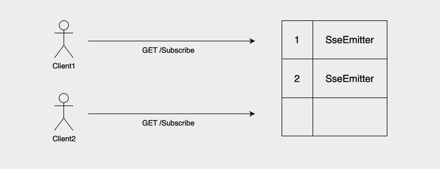 - Key: 클라이언트 ID (Long), Value: 해당 클라이언트와의 SSE 연결을 관리하는 SseEmitter 객체