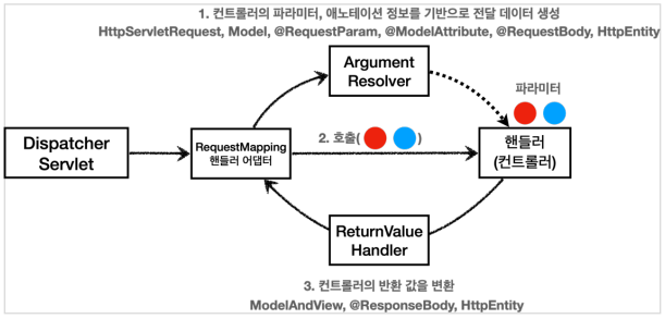 처음에 있던 Spring MVC 구조에서 @RequestMapping을 처리하는 핸들러 어댑터인 RequestMappingHandlerAdapter(요청 매핑 핸들러 어댑터)에 있다.