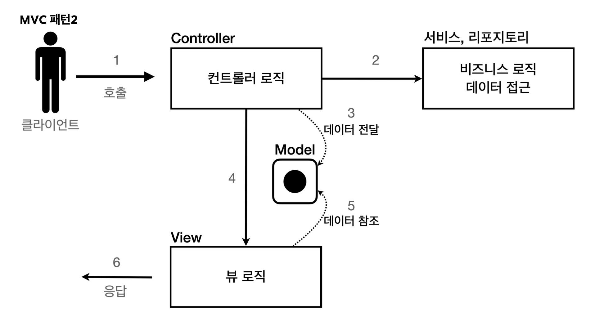 하나의 서블릿이나, JSP로 처리하던 것을 컨트롤러(Controller)와 뷰(View)라는 영역으로 서로 역할을 나눈 것