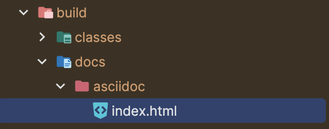 이후 build(asciidoctor)를 진행하면 build/docs/asciidoc 하위에 html 파일이 생성된다.